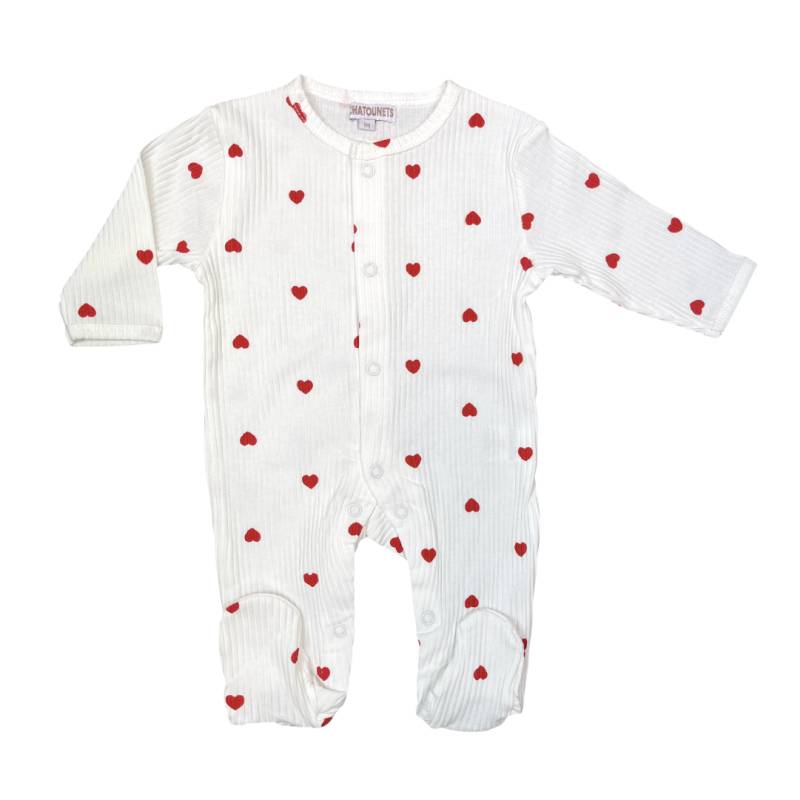 Son motif cœur apporte une touche de douceur et de tendresse à la tenue de bébé. Un modèle idéal pour composer un trousseau de naissance harmonieux.